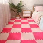Designed like a fun jigsaw puzzle, this set includes 12 interlocking tiles that you can easily assemble and customize. Mix and match the rose red and pink pieces to create your own unique layout, making it both a functional and playful addition to your décor.
