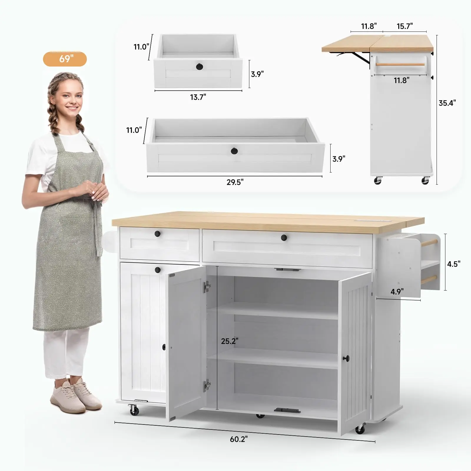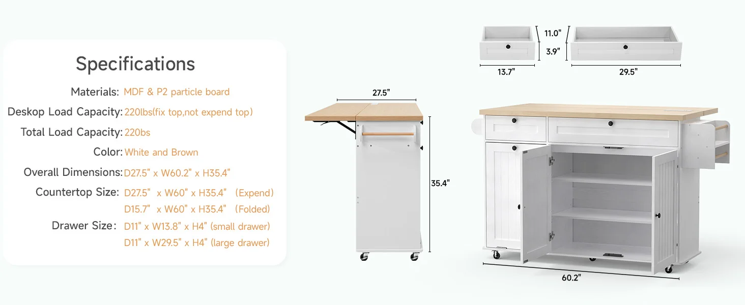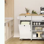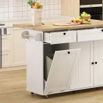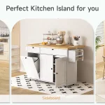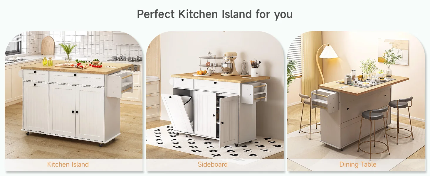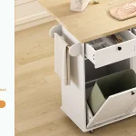 Featuring two spacious cabinets, two drawers, a towel rack, and a spice rack, this island keeps all your kitchen essentials neatly organized. The integrated cabinet accommodates a 10-gallon trash bin, helping maintain a clean and odor-free kitchen environment.