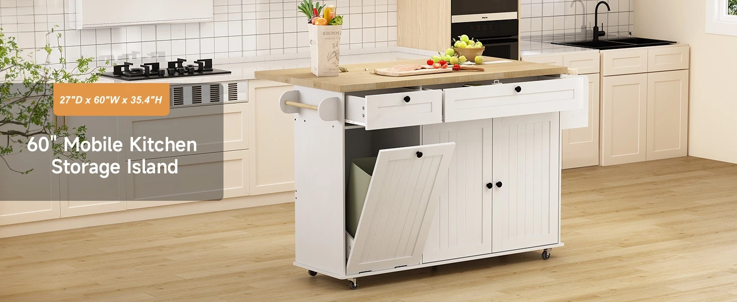 Upgrade your kitchen with this versatile 60" mobile kitchen island, designed to combine style, functionality, and convenience in one compact unit. Perfect for modern homes, it serves as a prep station, coffee bar, microwave stand, or extra storage solution wherever you need it.